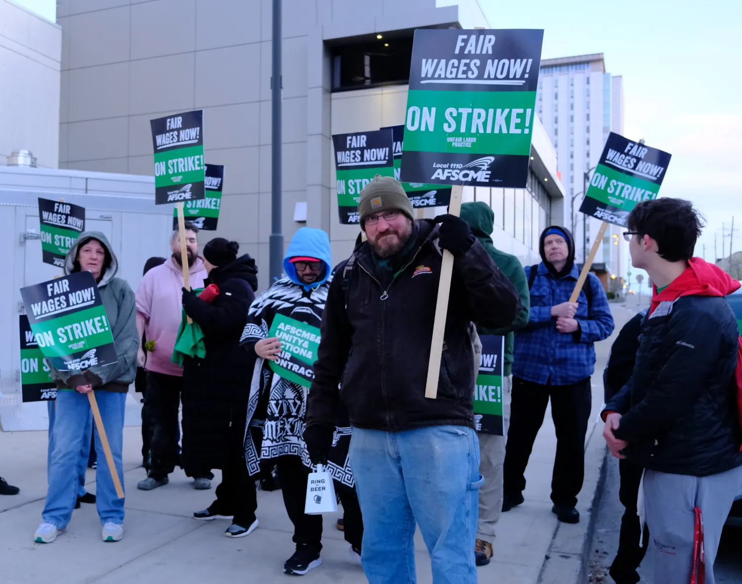 Fed up with the administration’s refusal to agree to fair wages, on April 8 members of AFSCME Local 1110 walked off the job on strike.